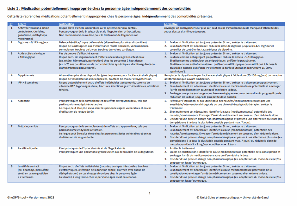 L’outil Gheop3s, développé par l’université de Gand a pour objectif d’effectuer efficacement une analyse bien définie de l’utilisation et du profil des médicaments chez un patient âgé.